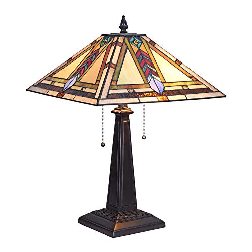 Price review Tiffany Table Lamp W16 H23 Inch 2-Light Stained Glass Mission Style Vintage Desk Light ARTZONE